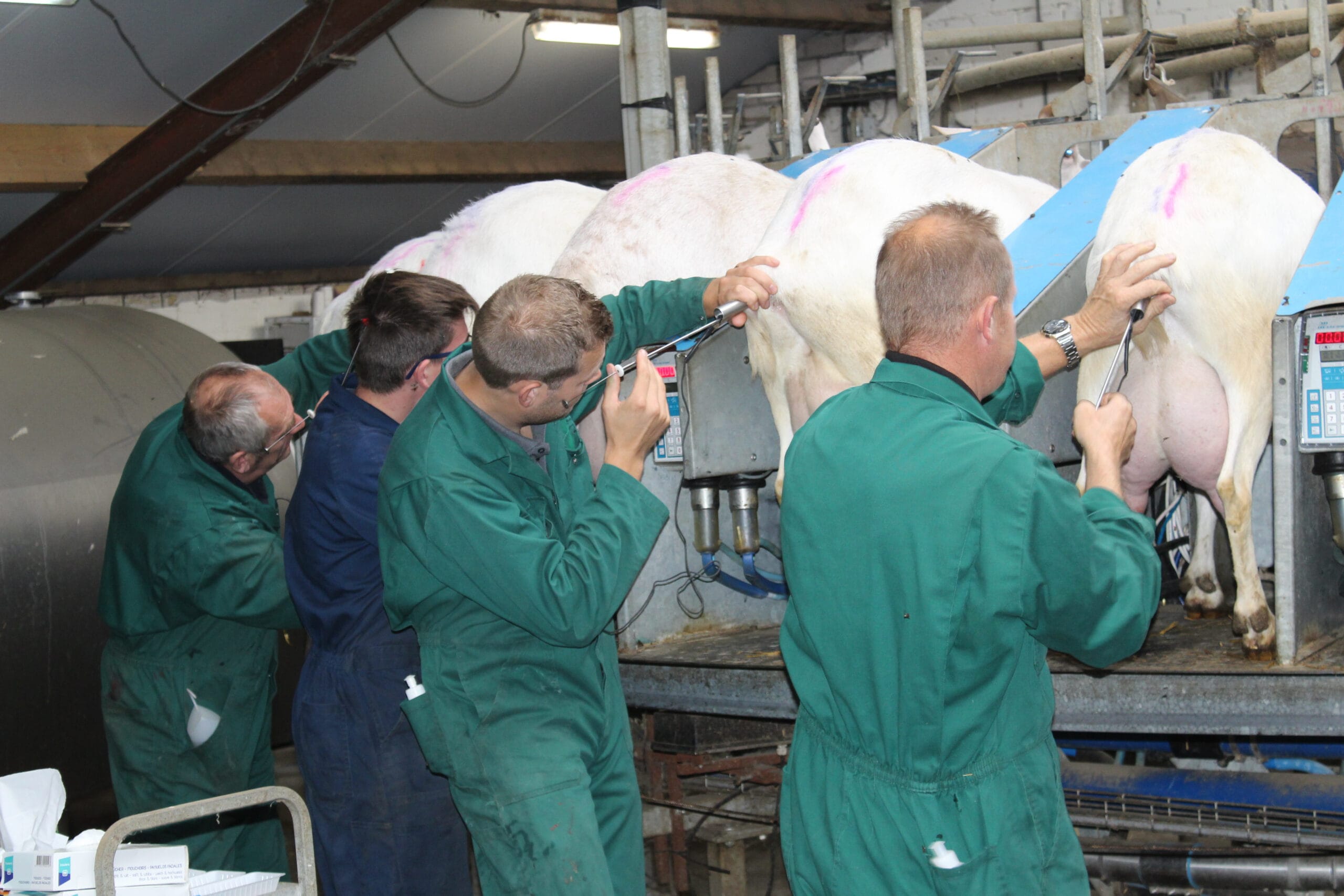 Wij beschikken over een inseminatiebox die na elke klus zorgvuldig wordt gereinigd en ontsmet. Als de melkstal zich er voor leent is het ook mogelijk om de stand te insemineren.
